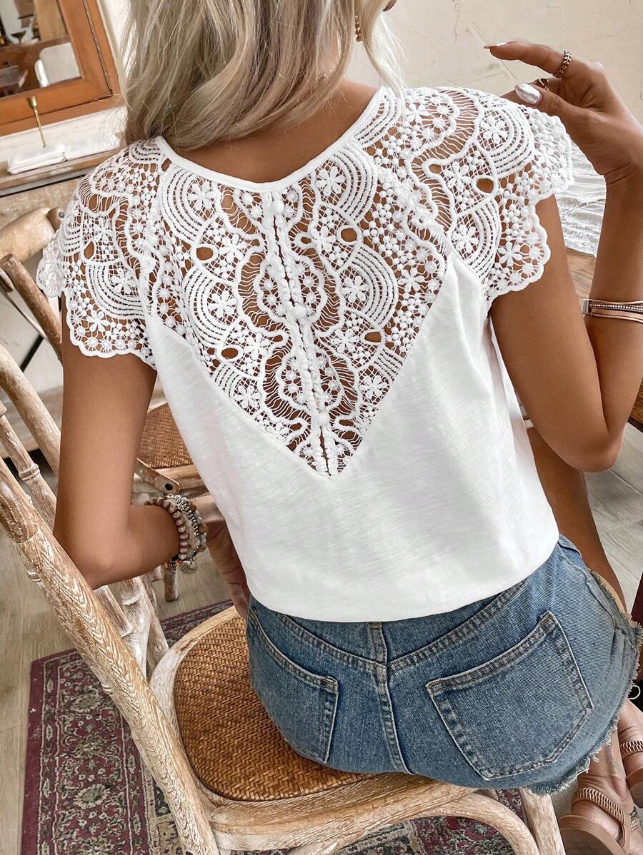 Inicio Prendas Blusa de Algodón con Escote en V y Detalle de Puntilla