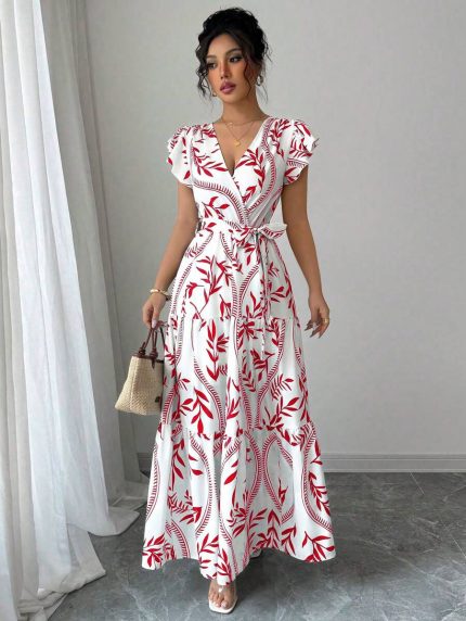 Vestido Elegante de Manga Corta con Estampado Floral ₲ 260.000