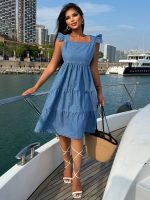 Vestido Tipo Jean con Cuello Cuadrado y Volantes